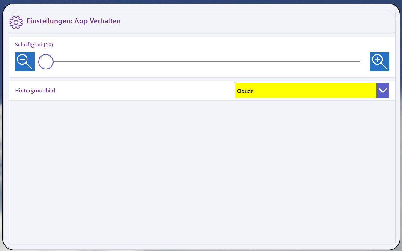 Legen Sie Ihren persönlichen Schriftgrad und das gewünschte Hintergrundbild fest.