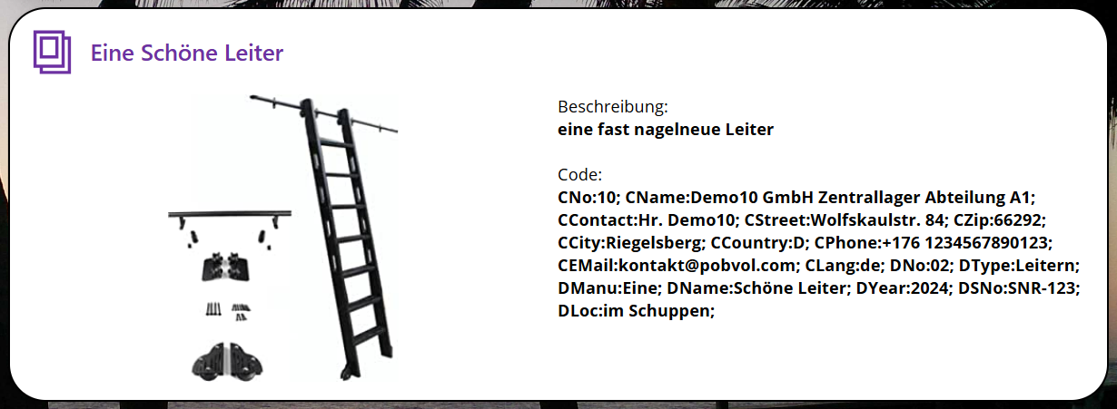 Mit einem Klick auf einen Eintrag wird das Inventar in der Detailansicht angezeigt.